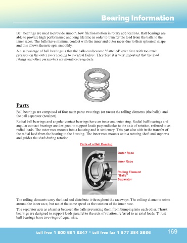 inner races. The balls have minimal contact with the inner and outer races due to their spherical shape